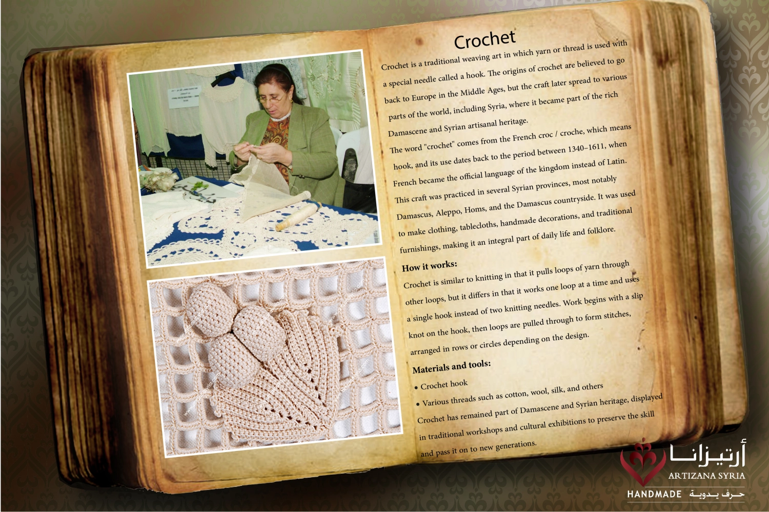 Crochet has remained part of Damascene and Syrian heritage, displayed in traditional workshops and cultural exhibitions to preserve the skill and pass it on to new generations.