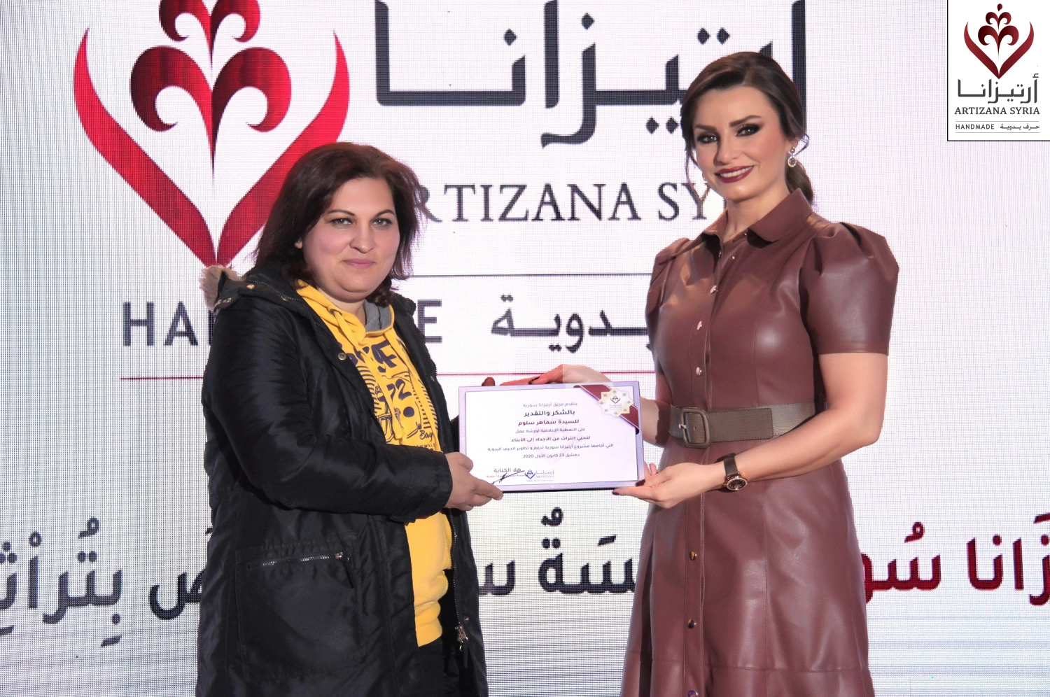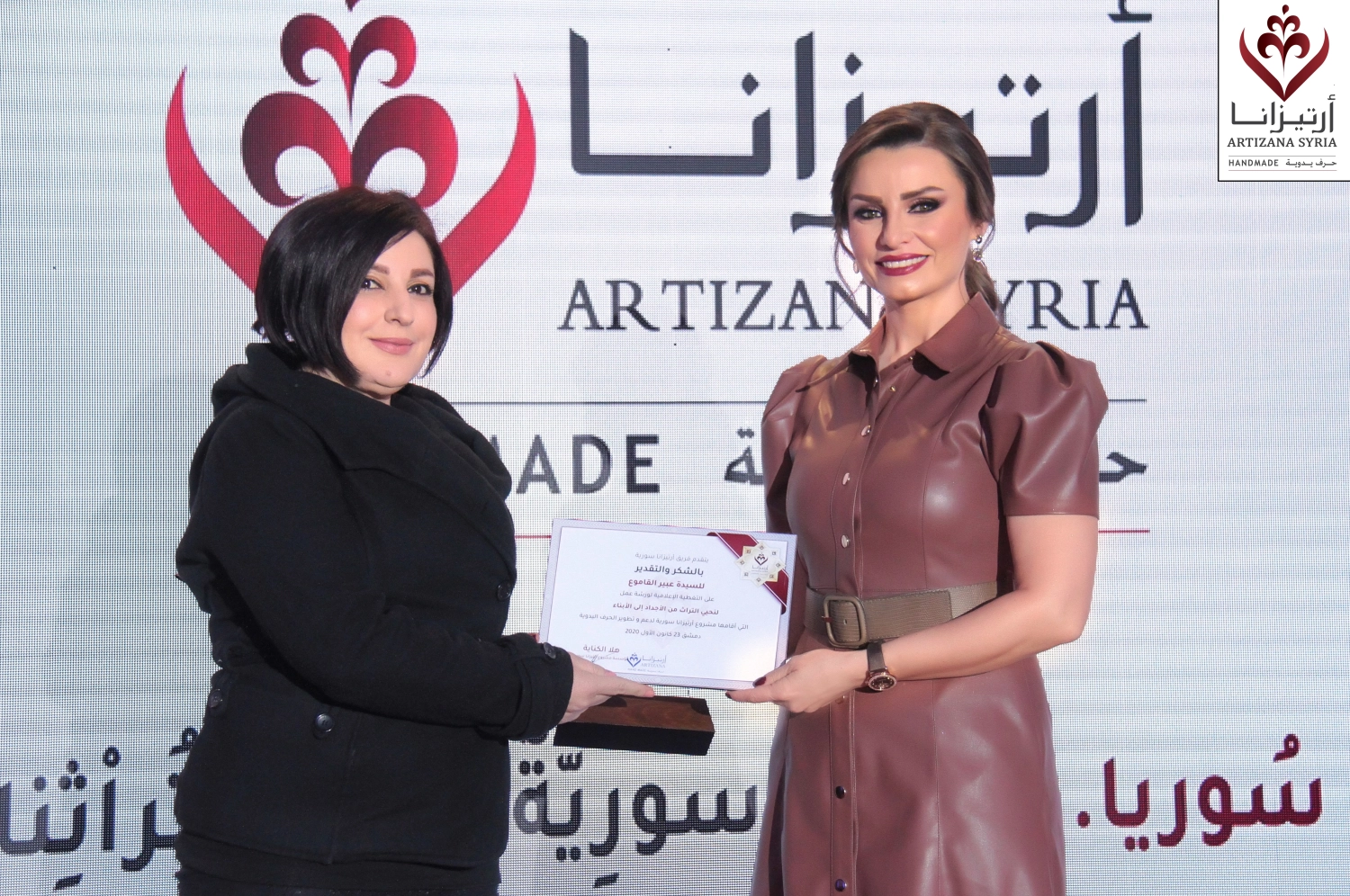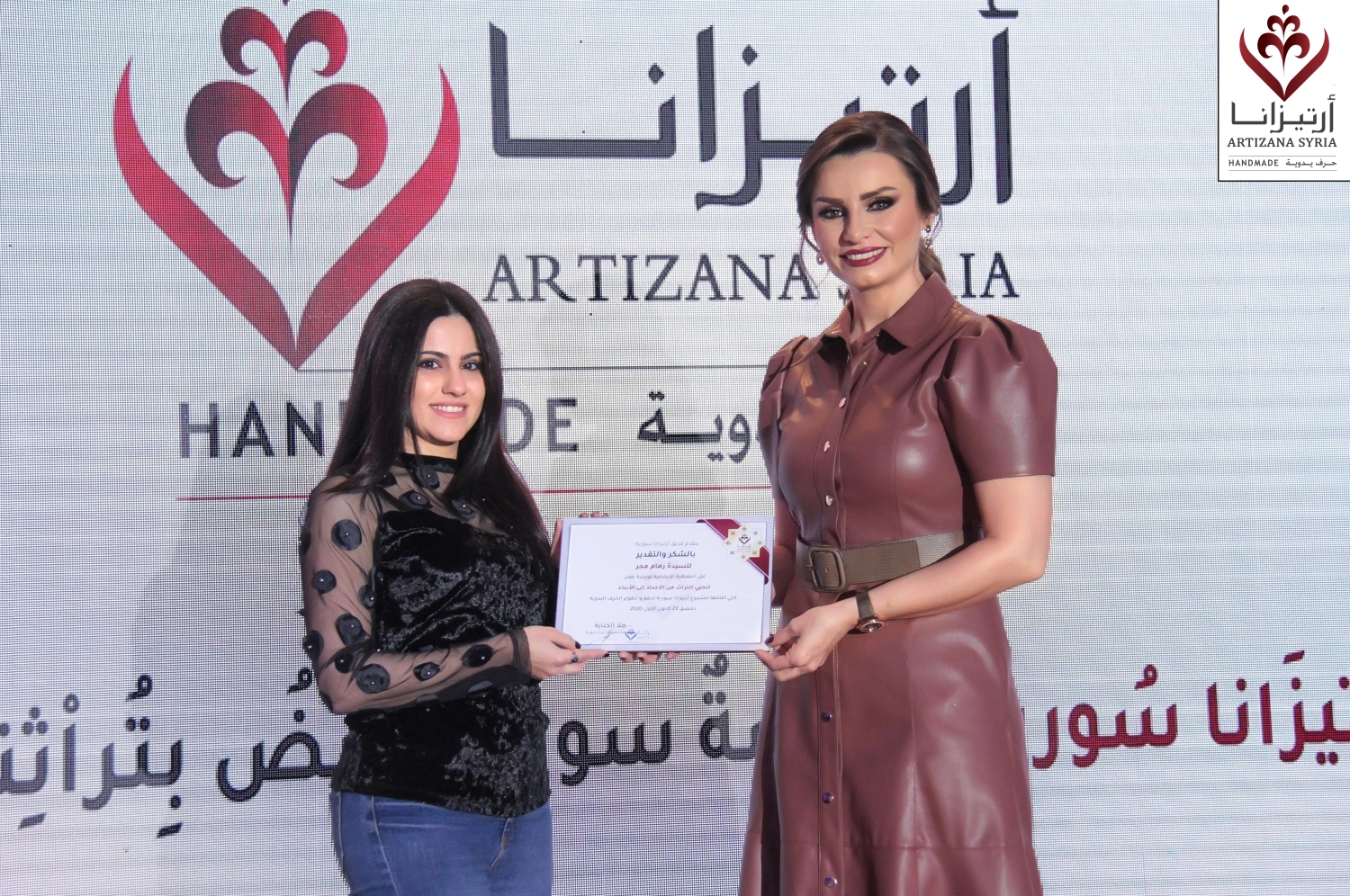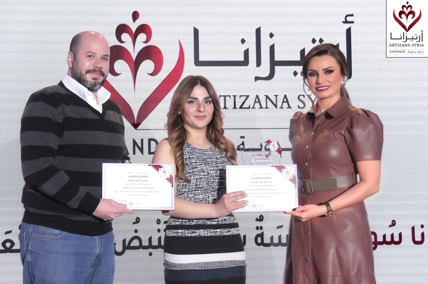 The ceremony featured a recorded presentation highlighting key moments from the workshop. As a token of appreciation, Artizana Syria presented commemorative gifts handcrafted by the children who participated in the event. Each piece was carefully made by the young Syrian participants to symbolize their deep connection to the nation’s heritage.
