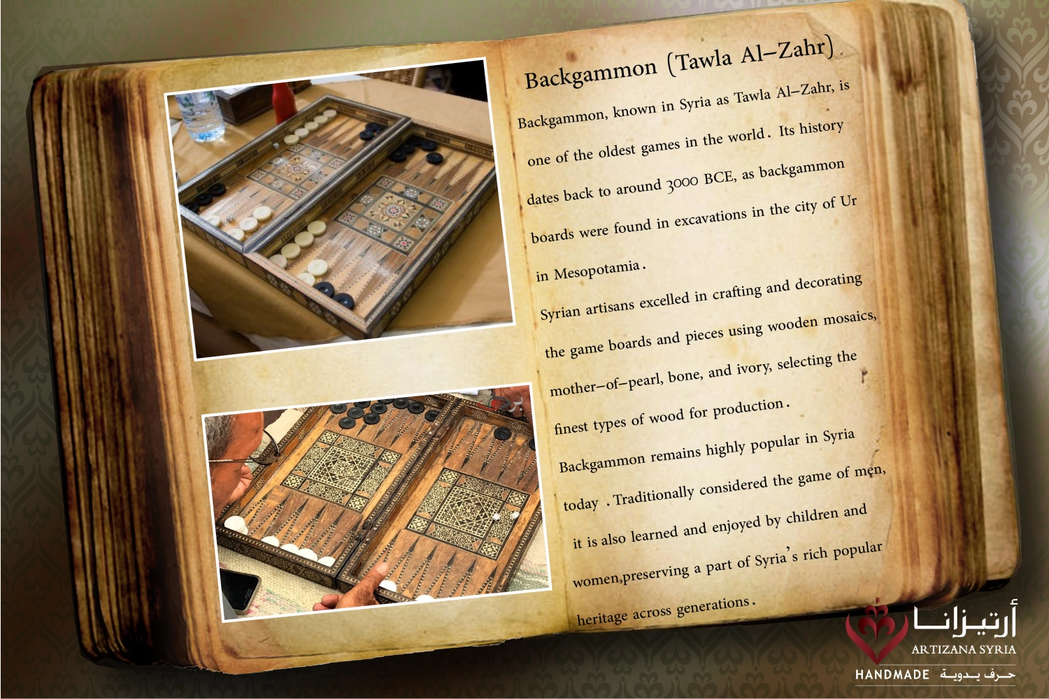 Backgammon, known in Syria as Tawla Al-Zahr, is one of the oldest games in the world. Its history dates back to around 3000 BCE, as backgammon boards were found in excavations in the city of Ur in Mesopotamia.